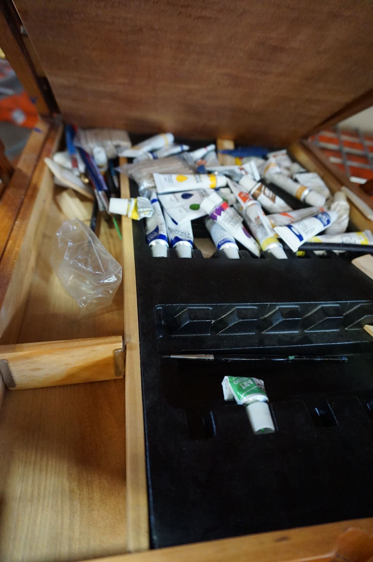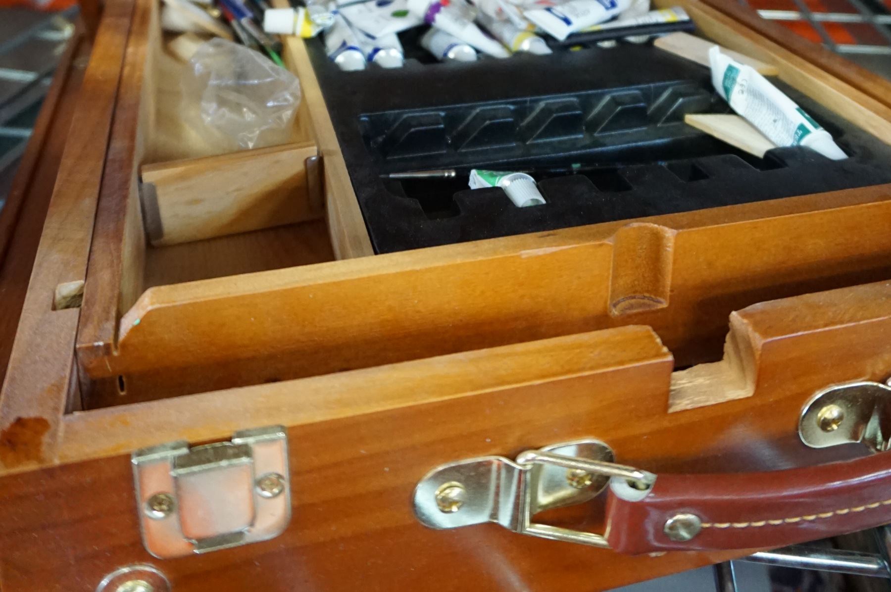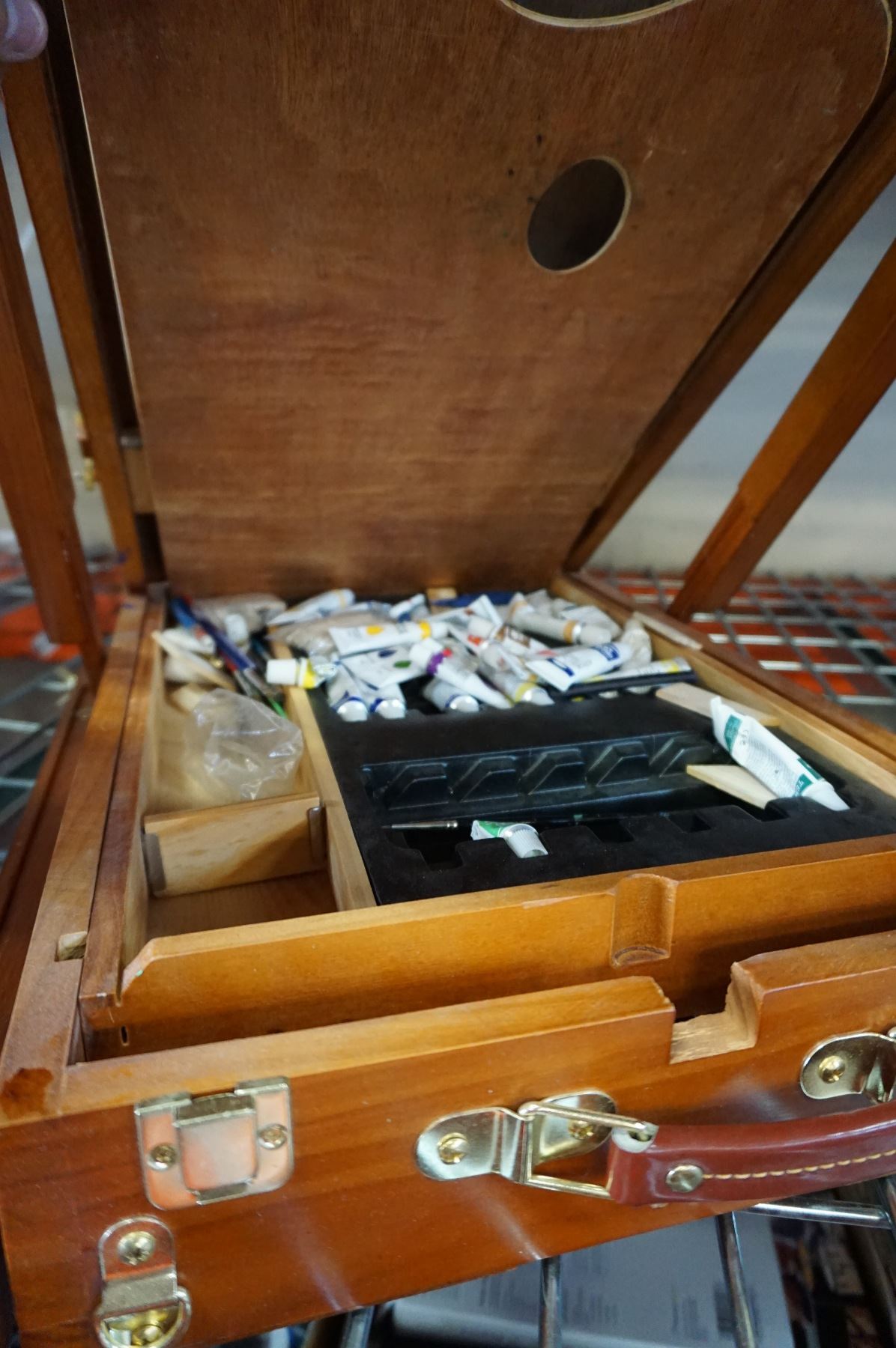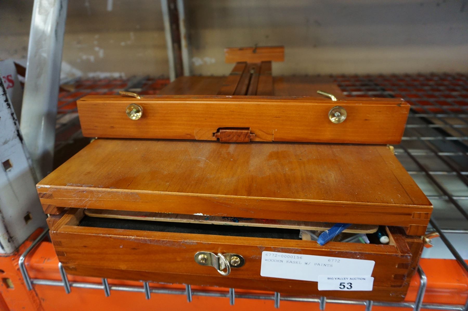 WOODEN EASEL W/ PAINTS
