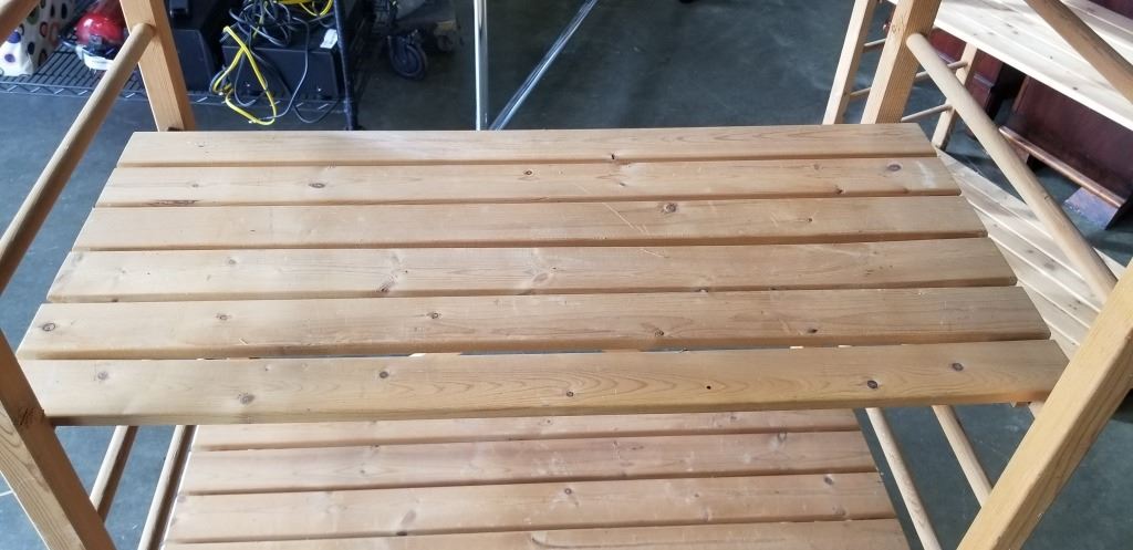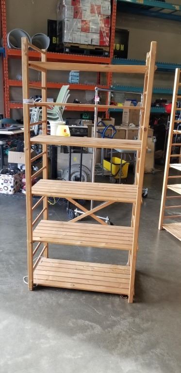 WOODEN SHELVING UNIT 35" WIDE BY 76" TALL