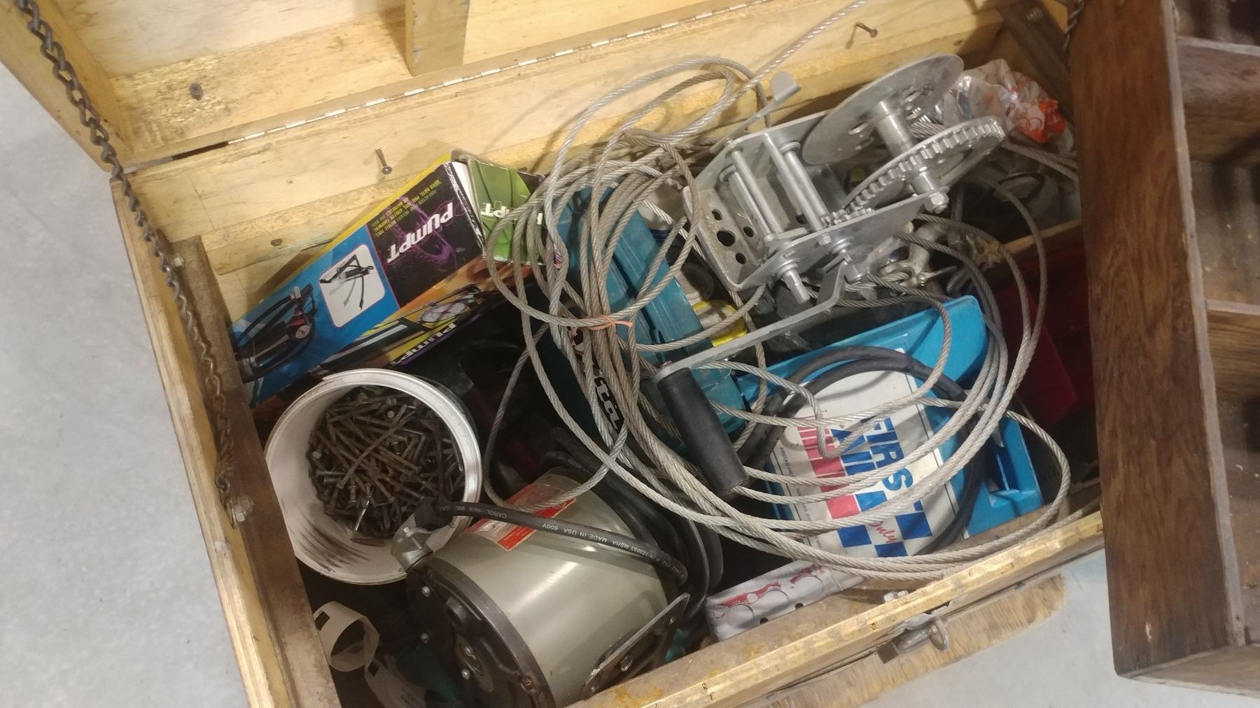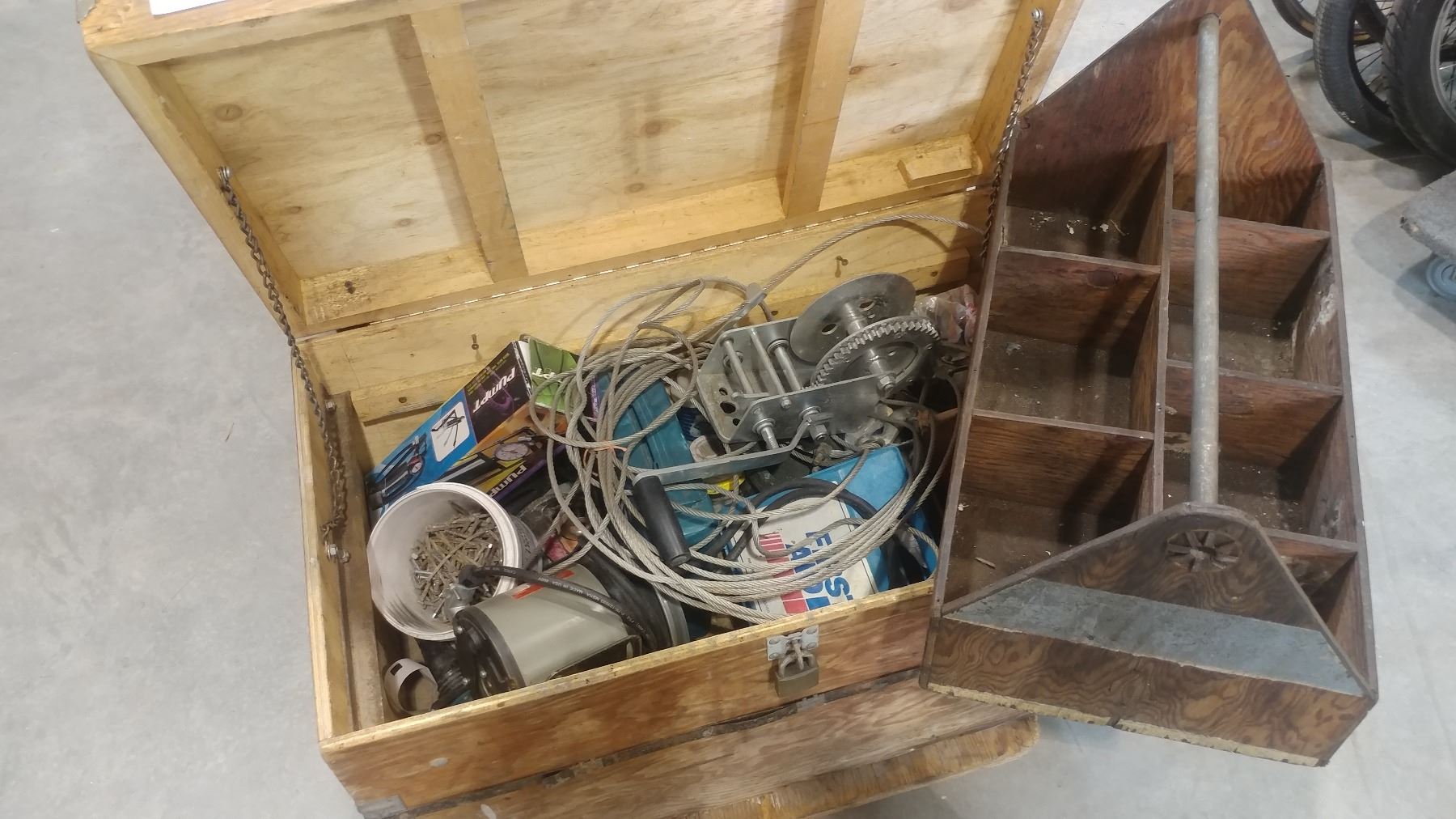 WOODEN TOOL TRUNK WITH CONTENTS