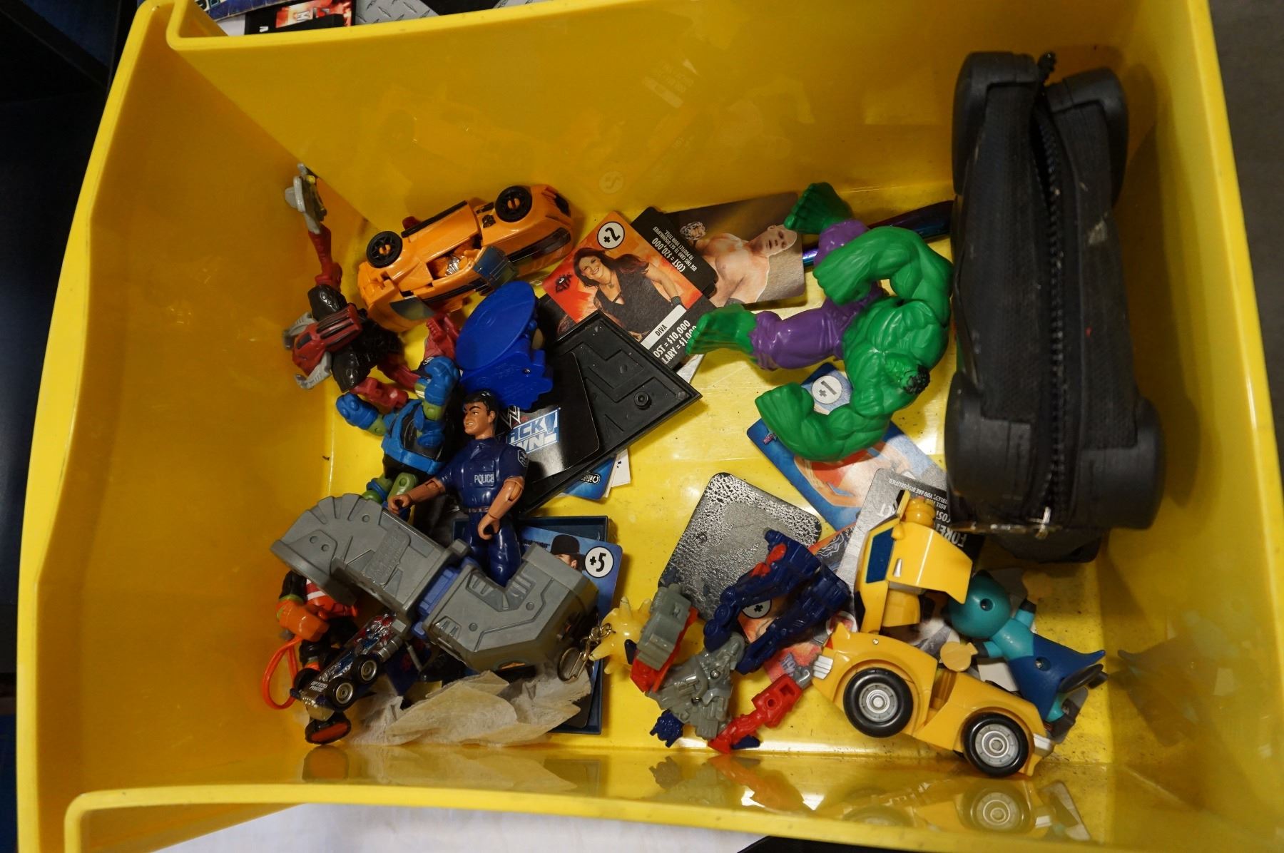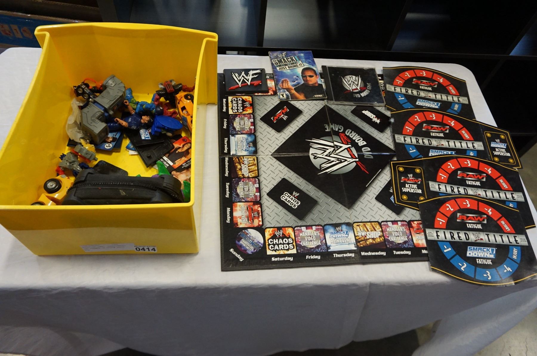 WRESTLING GAME, TRANSFORMERS, AND POKEMON IN YELLOW PARTS BIN