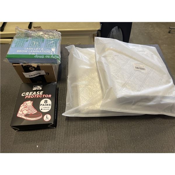 2 NEW WINDOW SNOW COVERS AND SHOE CREASE PROTECTORS, LASH LIFT AND BROW LAMINATION