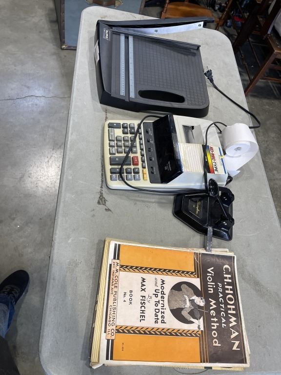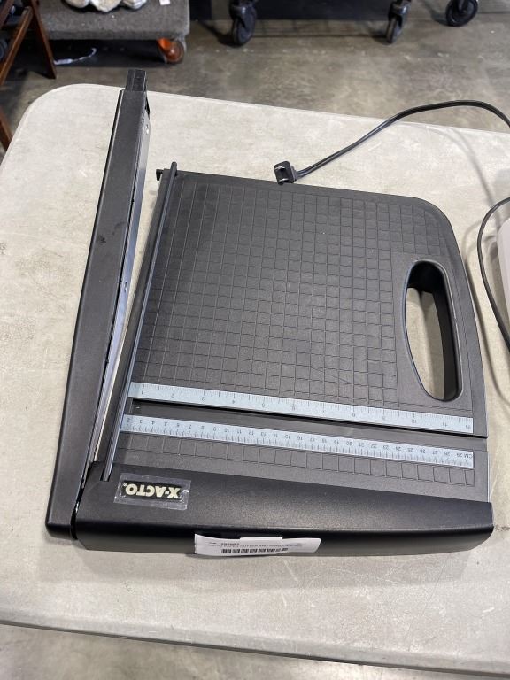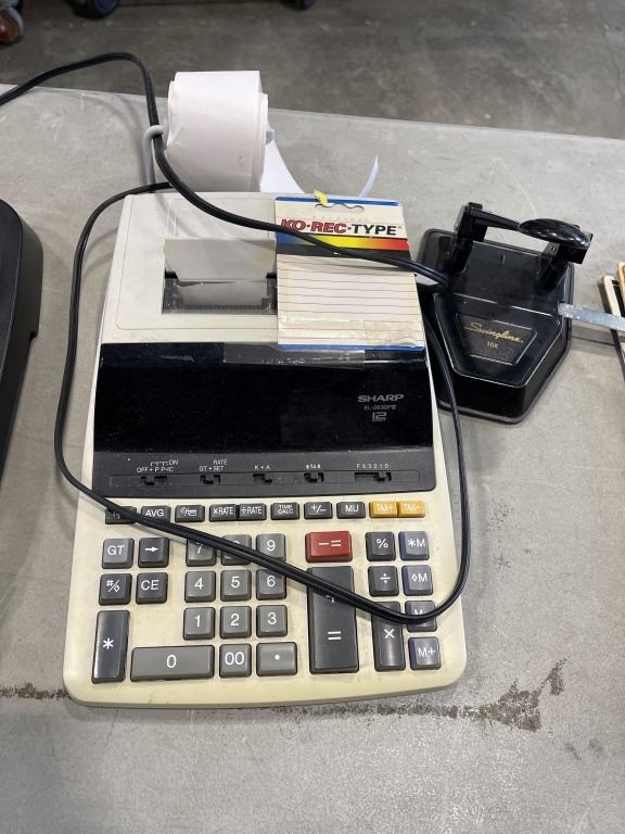 XACTO PAPER CUTTER AND SHARP ADDING MACHINE AND HOLE PUNCH