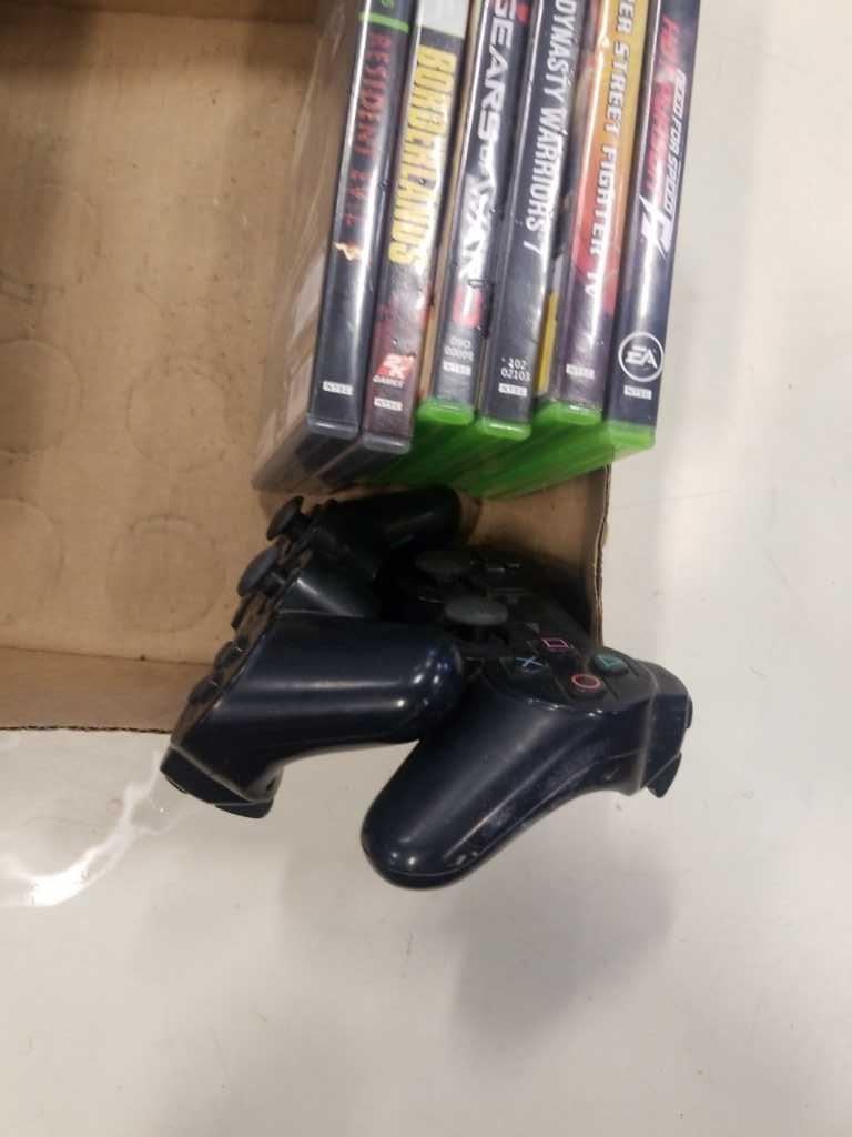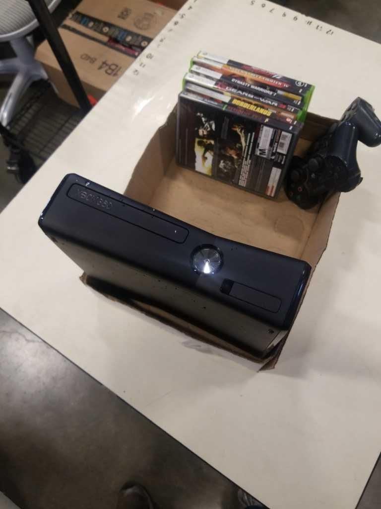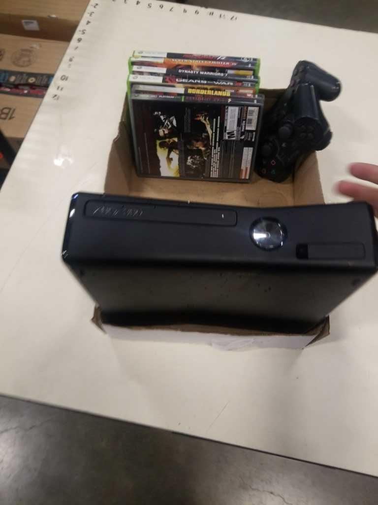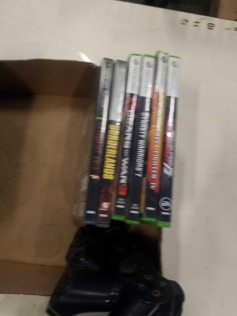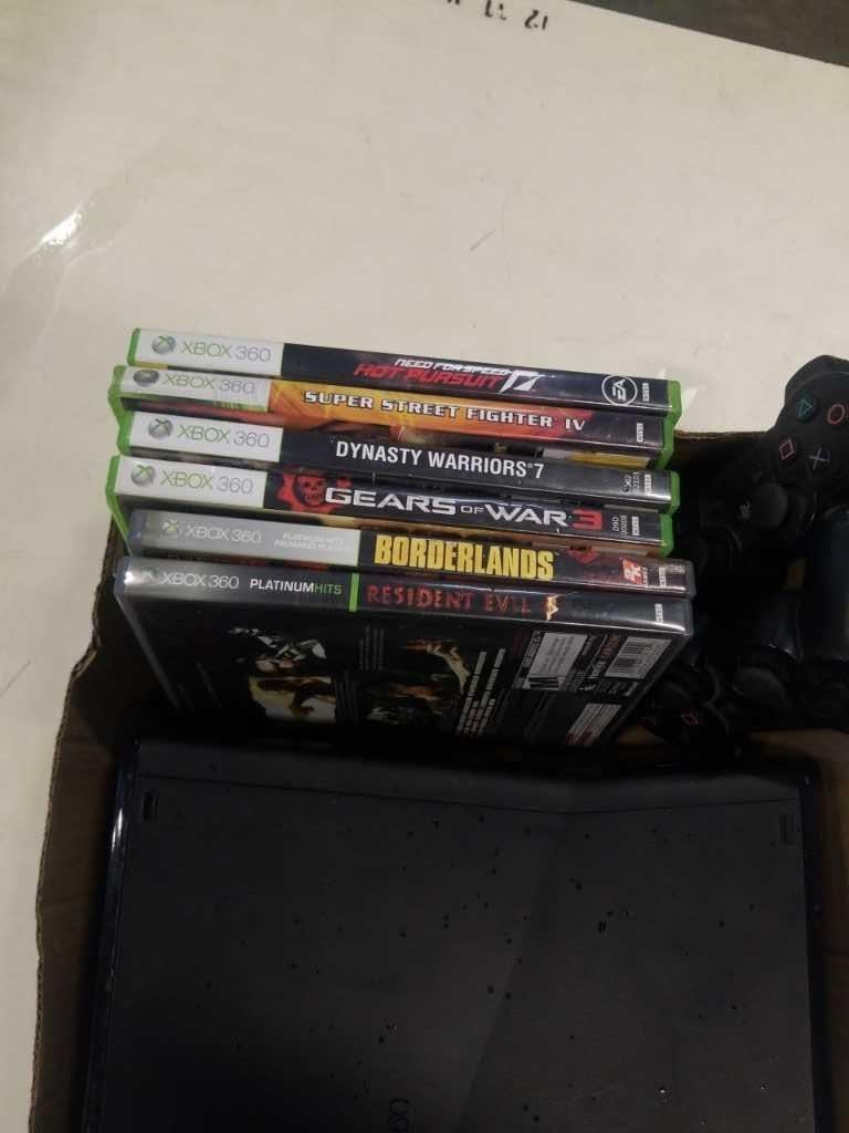 XBOX 360 CONSOLE WITH GAMES AND PS2 CONTROLLERS