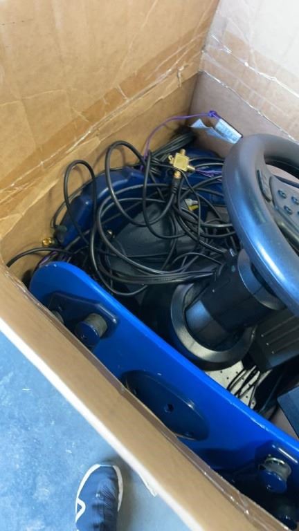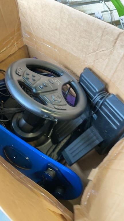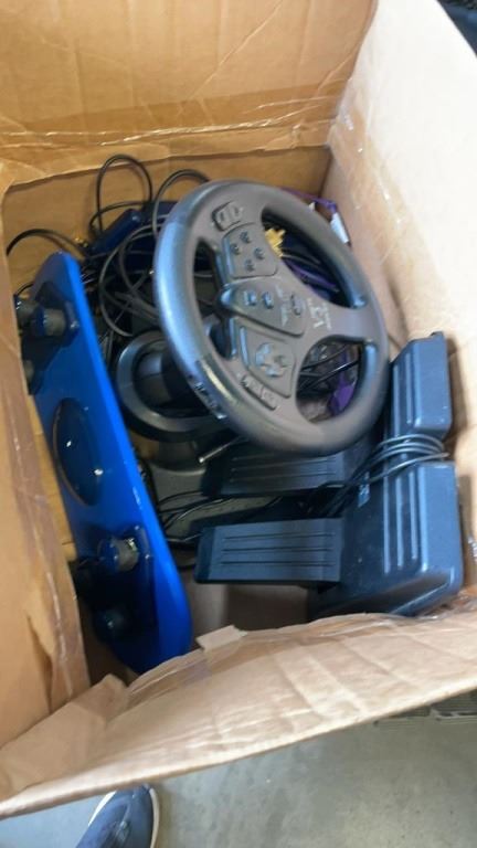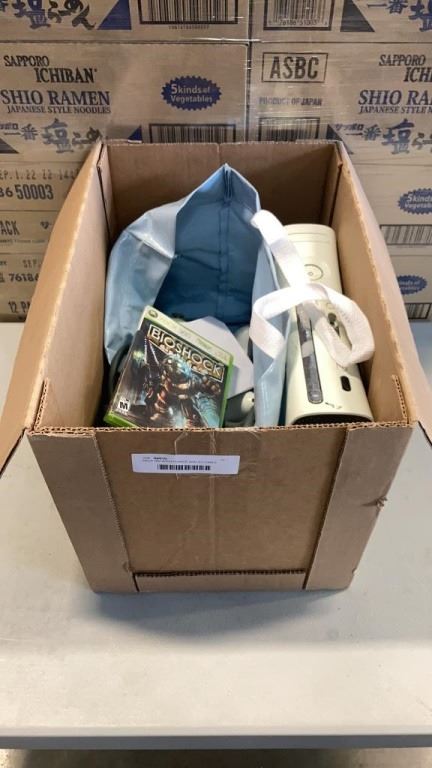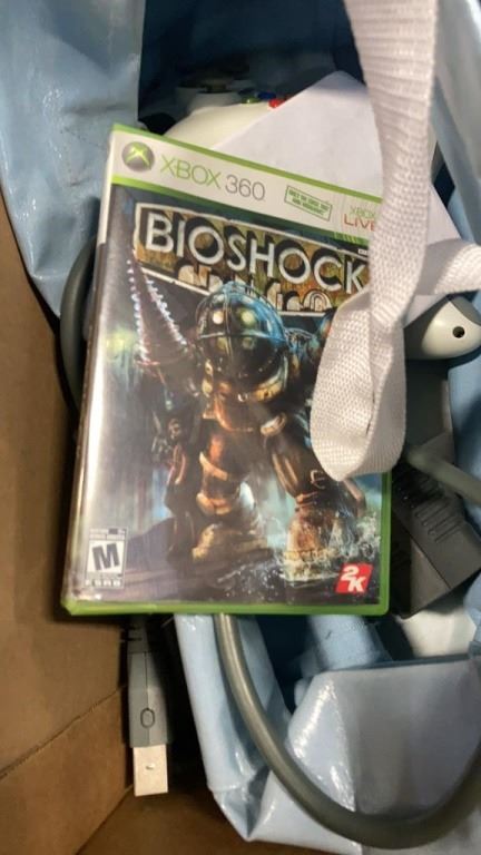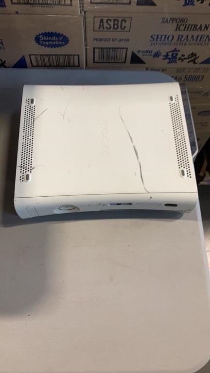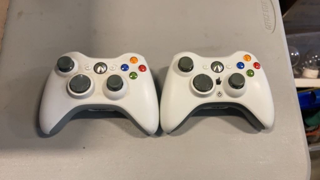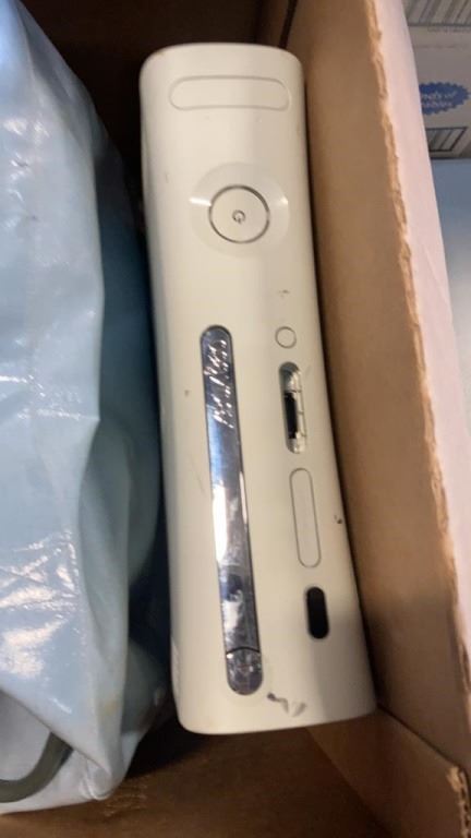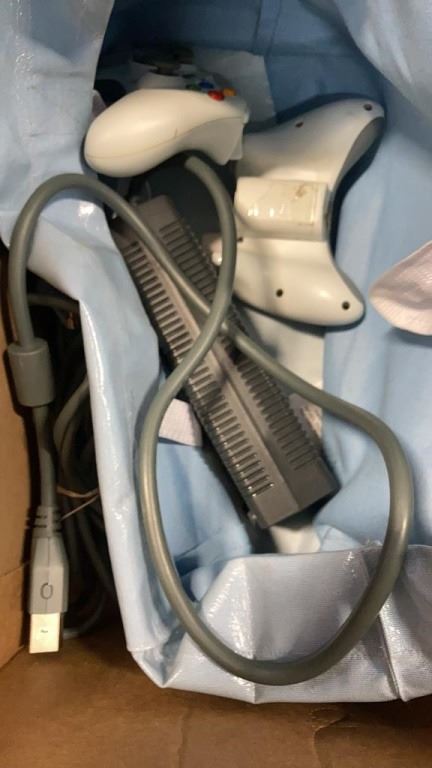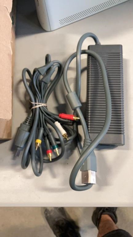 XBOX 360 WITH POWER AND AV CABLE WORKING, 2 CONTROLLERS AND 1 GAME INCLUDES RACING WHEEL AND PEDAL SET