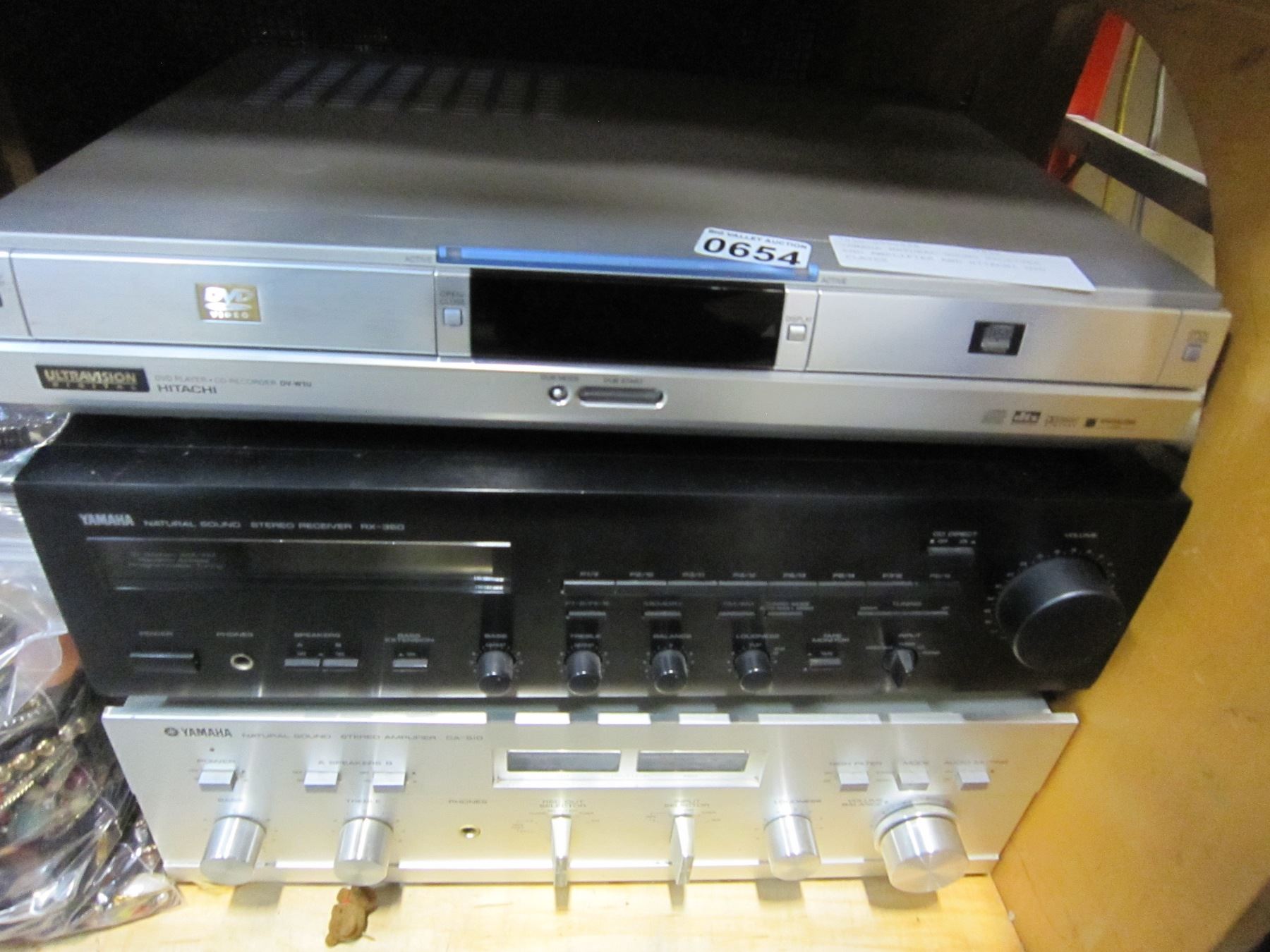YAMAHA NATURAL SOUND RECEIVER AND AMPLIFIER AND HITACHI DVD PLAYER