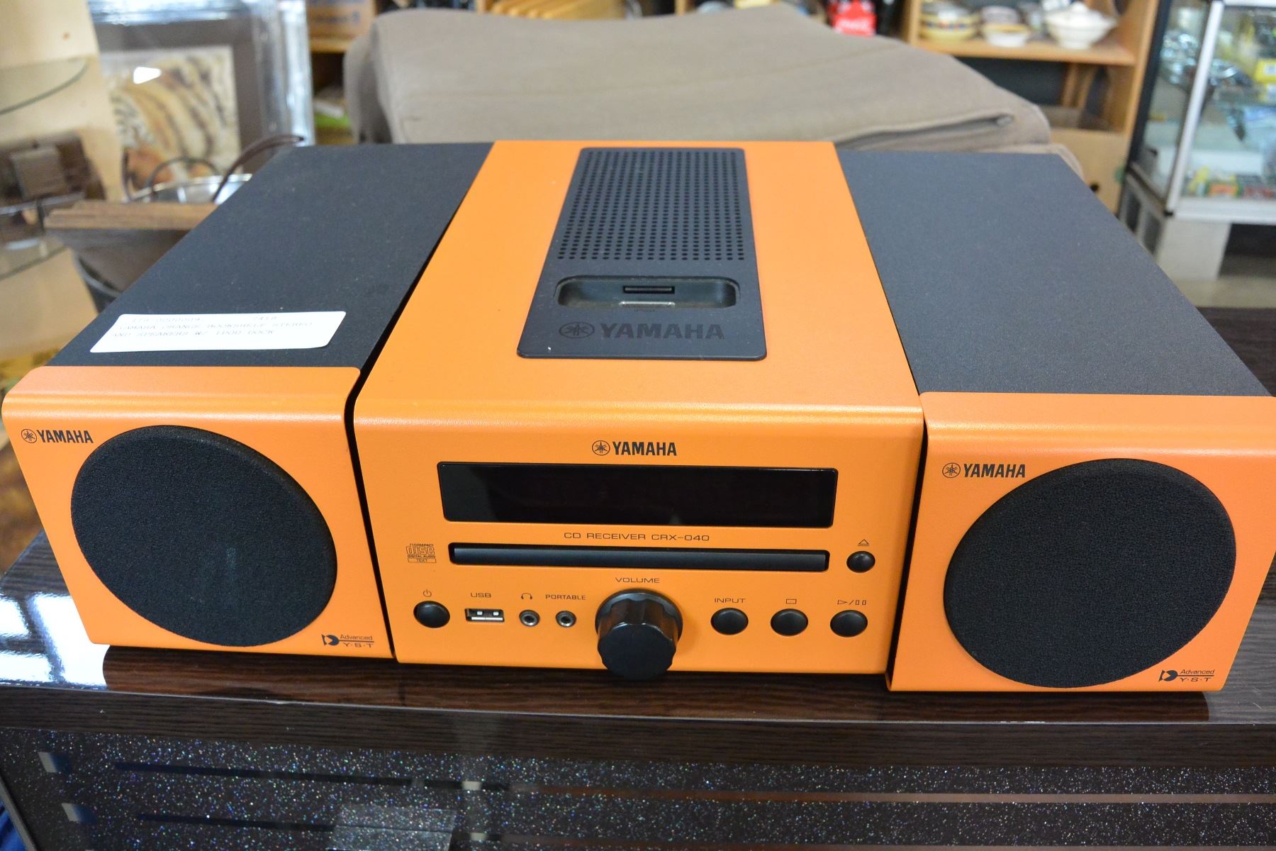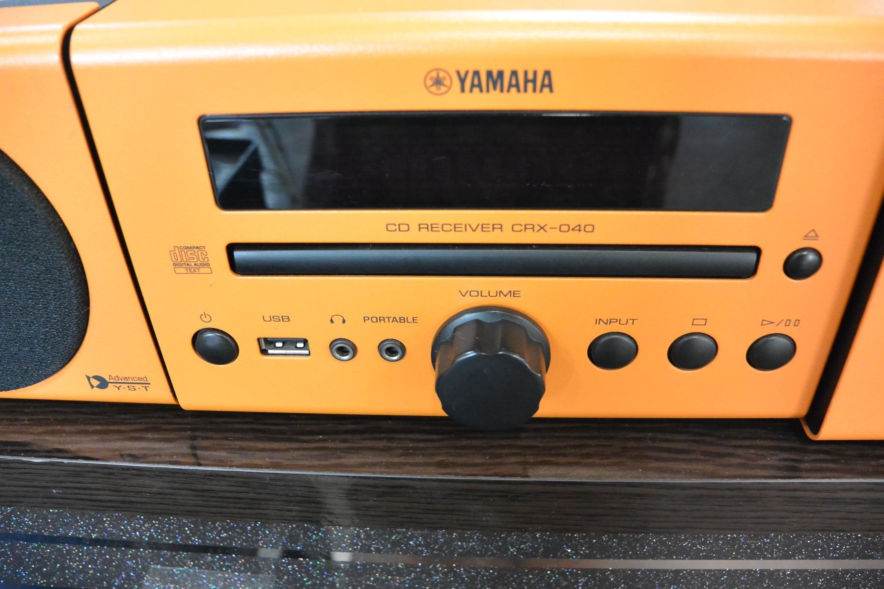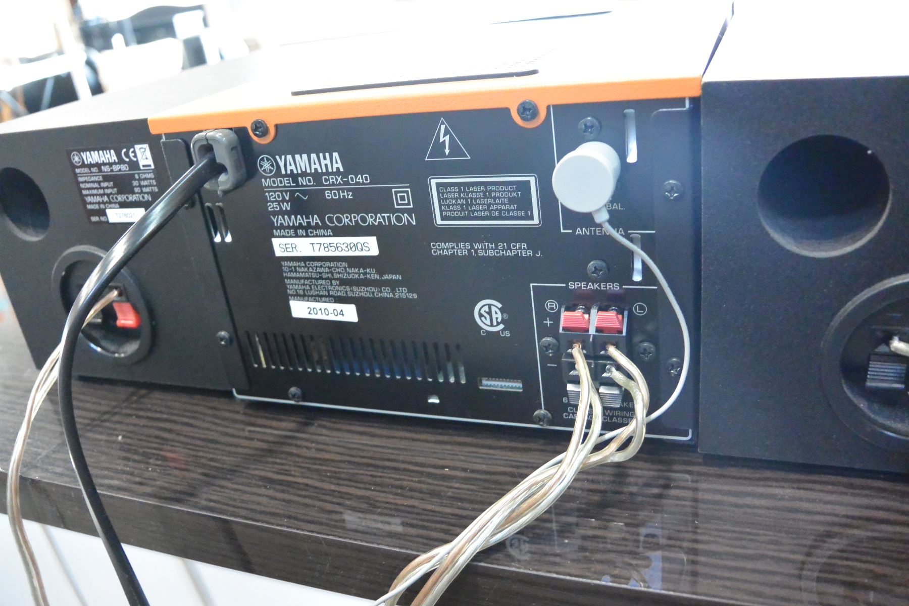 YAMAHA ORANGE BOOKSHELF STEREO AND SPEAKERS W/ IPOD DOCK
