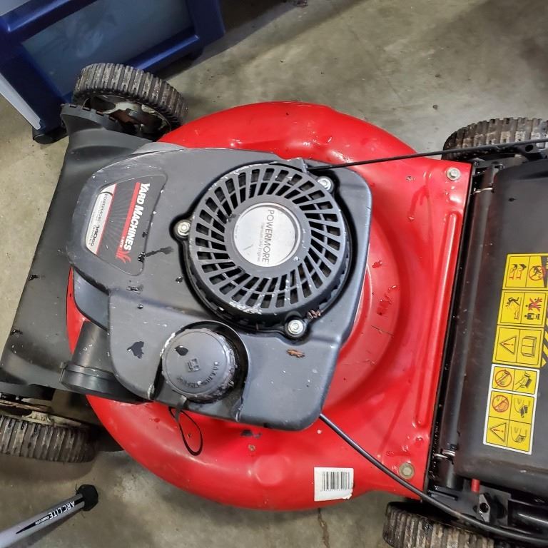YARD MACHINES WITH CATCHER GAS LAWN MOWER WORKING