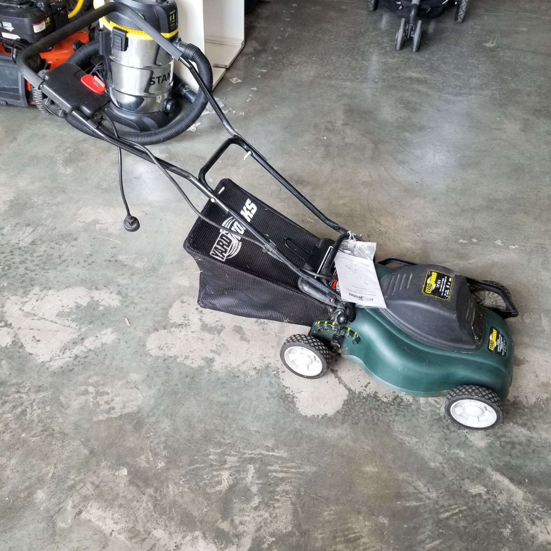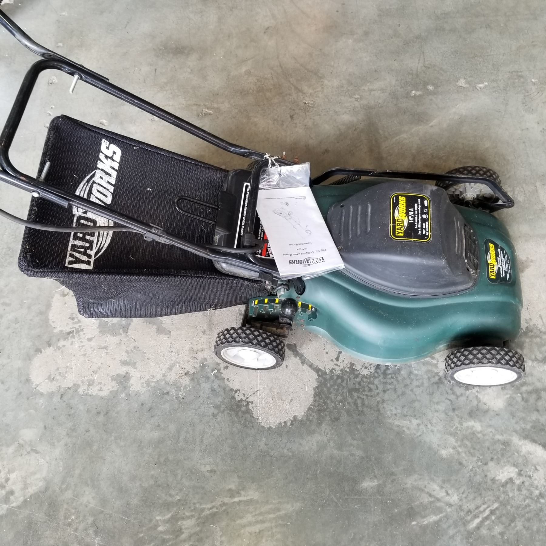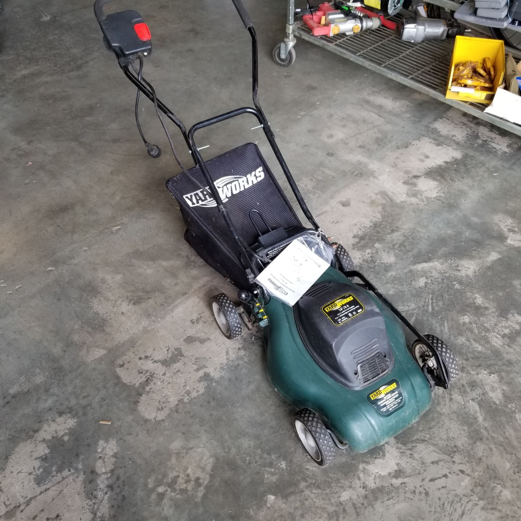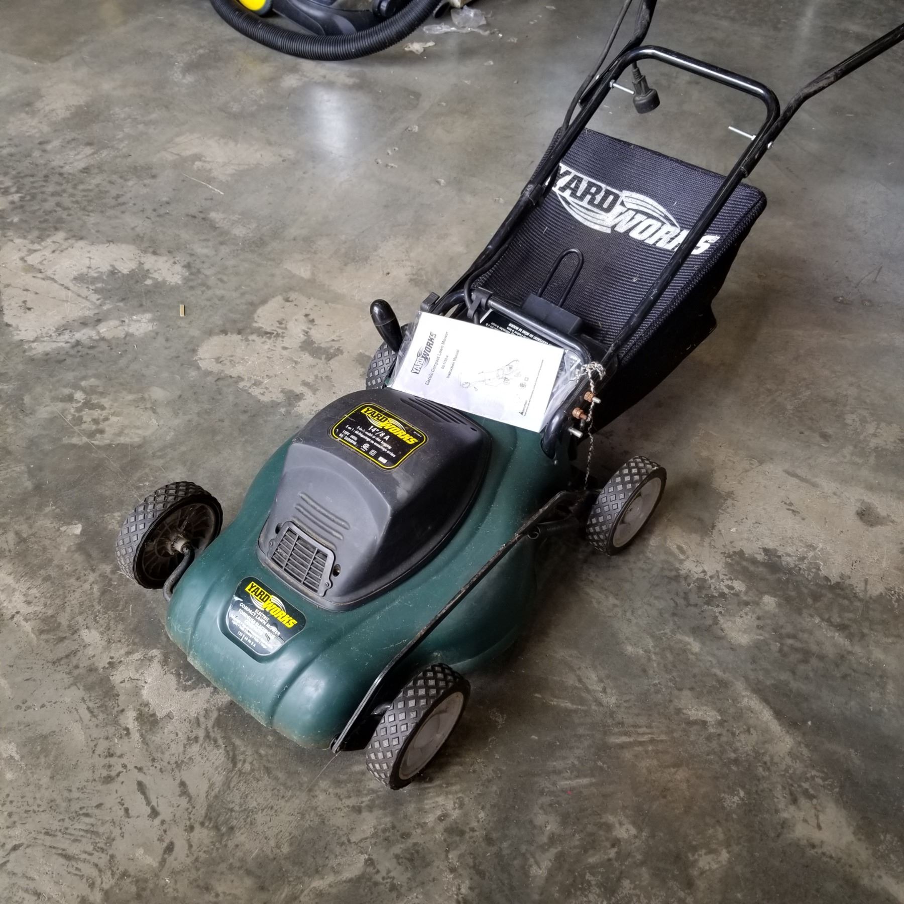 YARDWORK'S ELECTRIC COMPACT LAWN MOWER W/ INSTRUCTIONS AND BAG