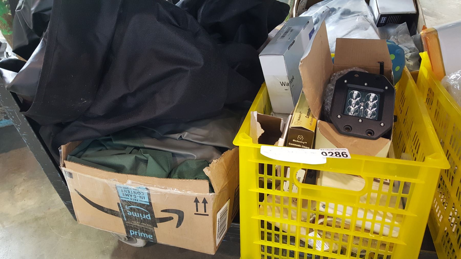 YELLOW TOTE OF NEW BEDDING AND 2 BBQ COVERS