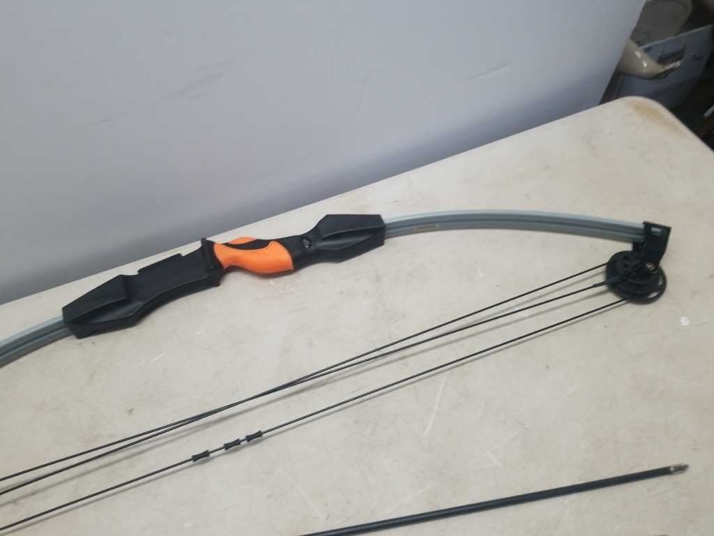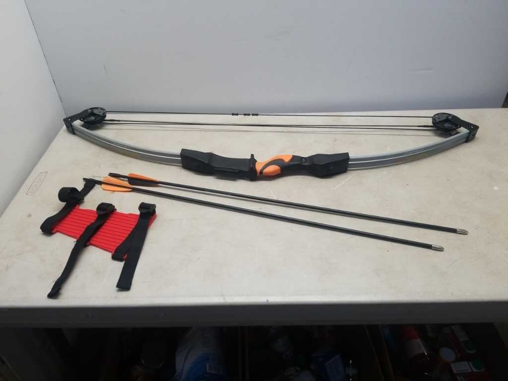 YOUTH COMPOUND BOW WITH WRISTGUARD AND 2 ARROWS