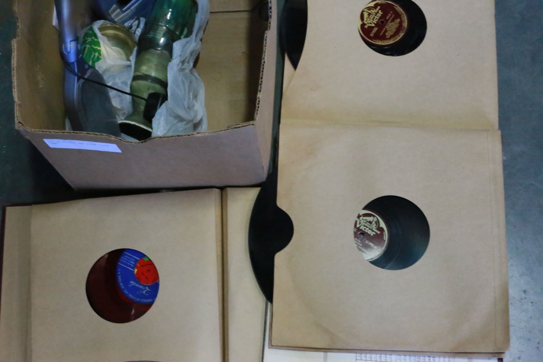 LOT OF RECORDS AND ALRAM CLOCK LAMP