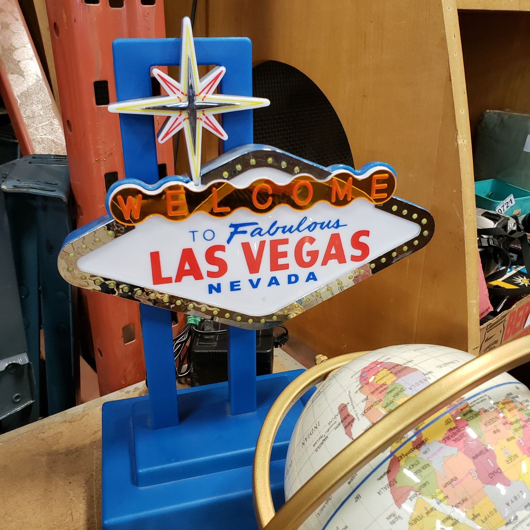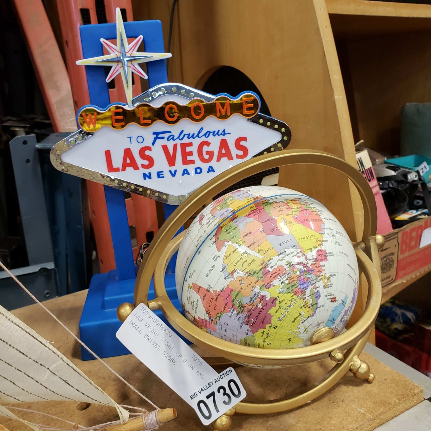 LAS VEGAS LIGHT UP SIGN AND SMALL SWIVEL GLOBE