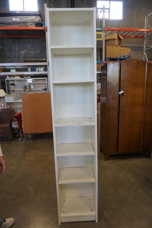 WHITE BOOKSHELF 16 INCHES WIDE X 11 DEEP X 80 TALL