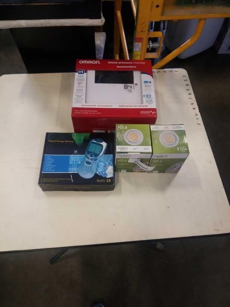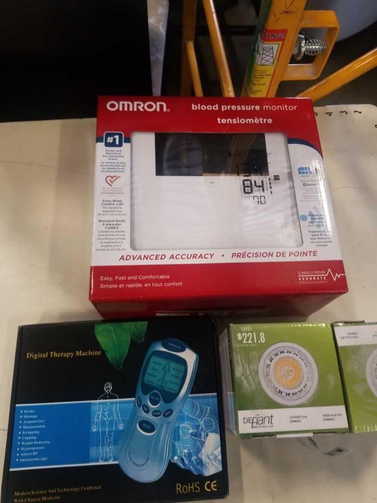 omron Blood Pressure monitor with digital therapy machine and 2 LED dimmable flood light bulbs